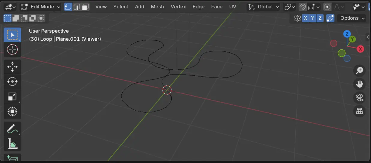To start, I used my Figma lines as a reference to produce an approximately similar geometry:
